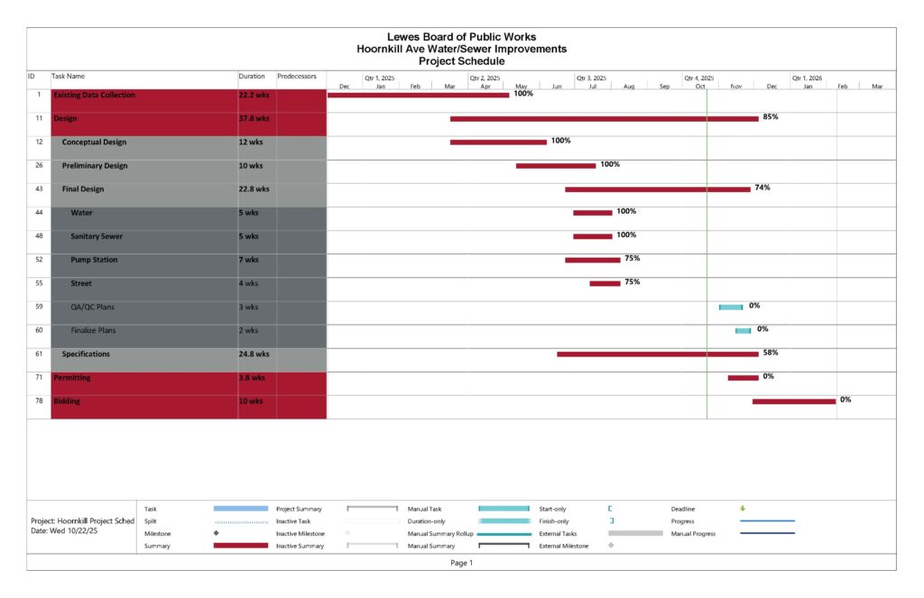This project is being financed through a combination of low-interest loans from the Delaware Water Pollution Control Revolving Fund and the Delaware Drinking Water State Revolving Fund. These funds, administered by state agencies, support critical infrastructure improvements to water and sewer systems across the state.